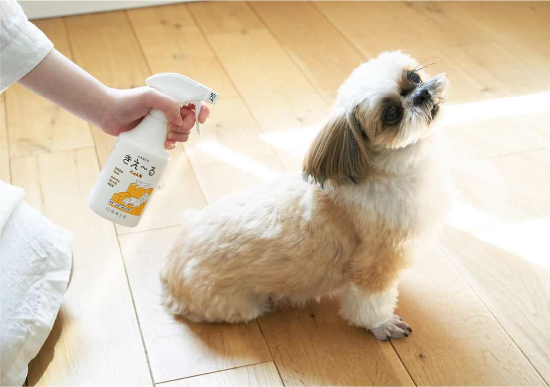 ペットと快適に暮らすために。きえ〜るペット用は、糞尿臭に効果を発揮し、トイレやケージ周りの消臭におすすめです。体毛や皮膚に液がかかったり、舐めても安心・安全。