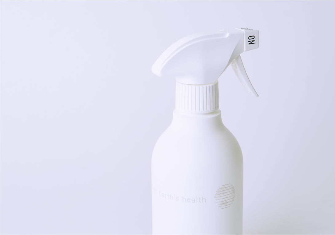 最もシンプルなボトルのきえ〜るをご紹介。ワンポイントで「地球の健康を見つめる」というメッセージ入り。デザインに飽きずに長くお使いいただきたい、そんな想いから作りました。