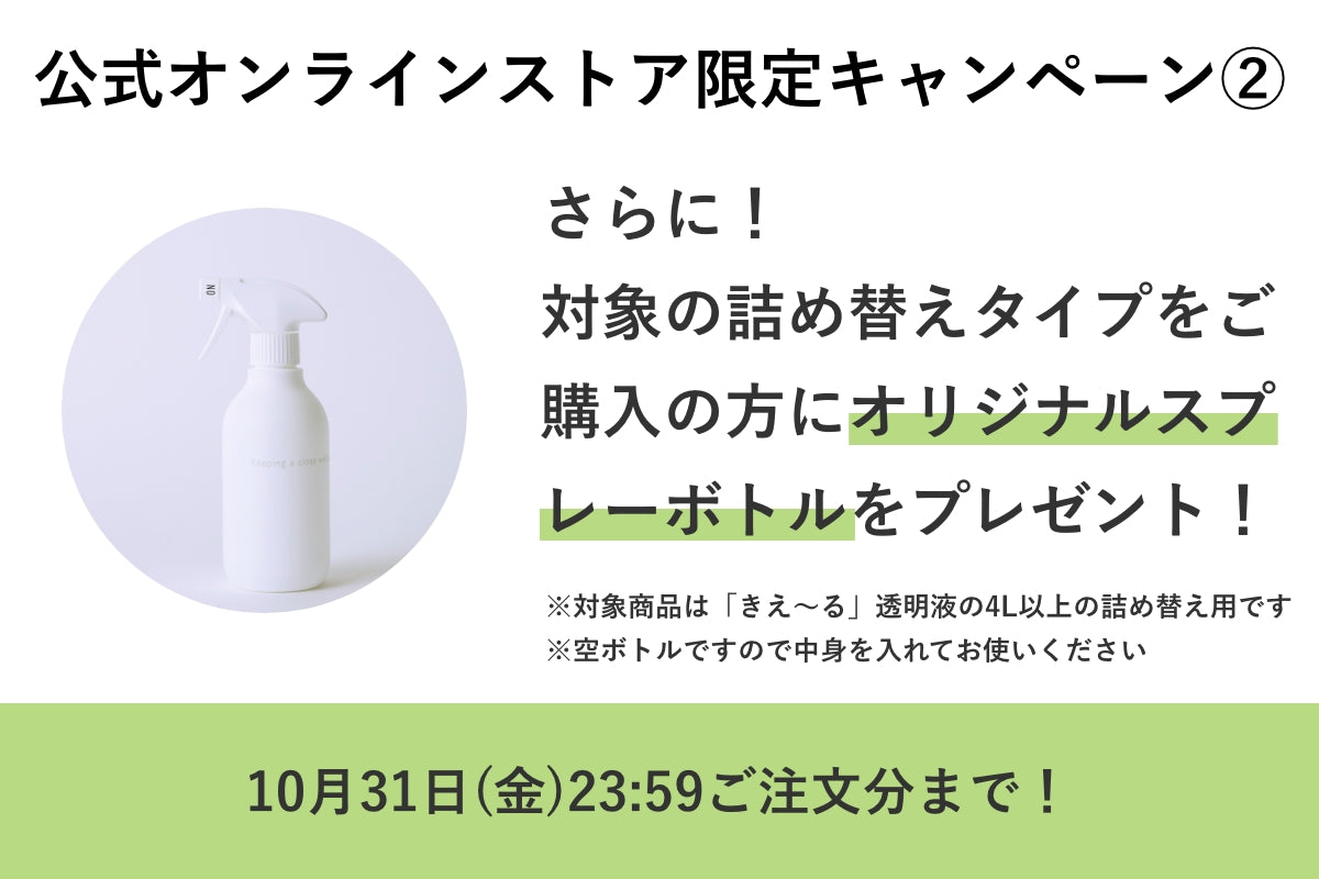 公式オンラインストアでご購入された方全員に「きえ〜る 加湿器用」の100mlサンプルをプレゼント!